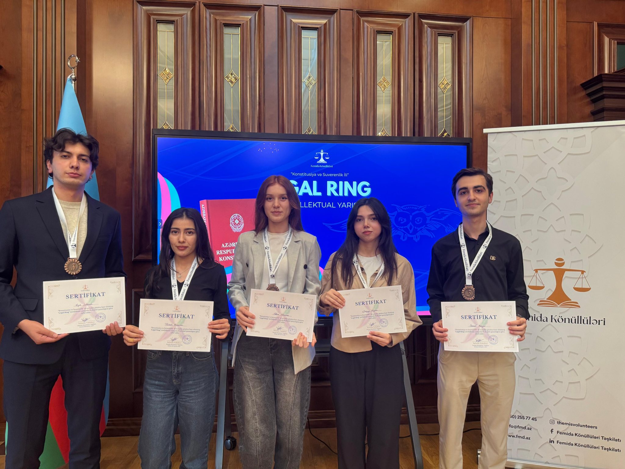 8 noyabr 2025-ci il tarixində Azərbaycan Respublikasında Konstitusiya və Suverenlik İli, həmçinin Vətən Müharibəsində Zəfərin 5 illiyi münasibətilə qeyd olunan əlamətdar bir gündə “Femida Könüllüləri” Təşkilatının təşkilatçılığı ilə gənclər arasında “Legal Ring” intellektual yarışı keçirilib.İlkin mərhələ, 1/4 final, yarımfinal və final mərhələlərindən ibarət olan bu yarışın əsas məqsədi gənclərin hüquqi düşüncə tərzinin inkişafına töhfə vermək, Konstitusiya və milli qanunvericilik sahəsində maarifləndirməni təşviq etmək, eləcə də iştirakçıların analitik və tənqidi təhlil bacarıqlarını gücləndirməkdir.