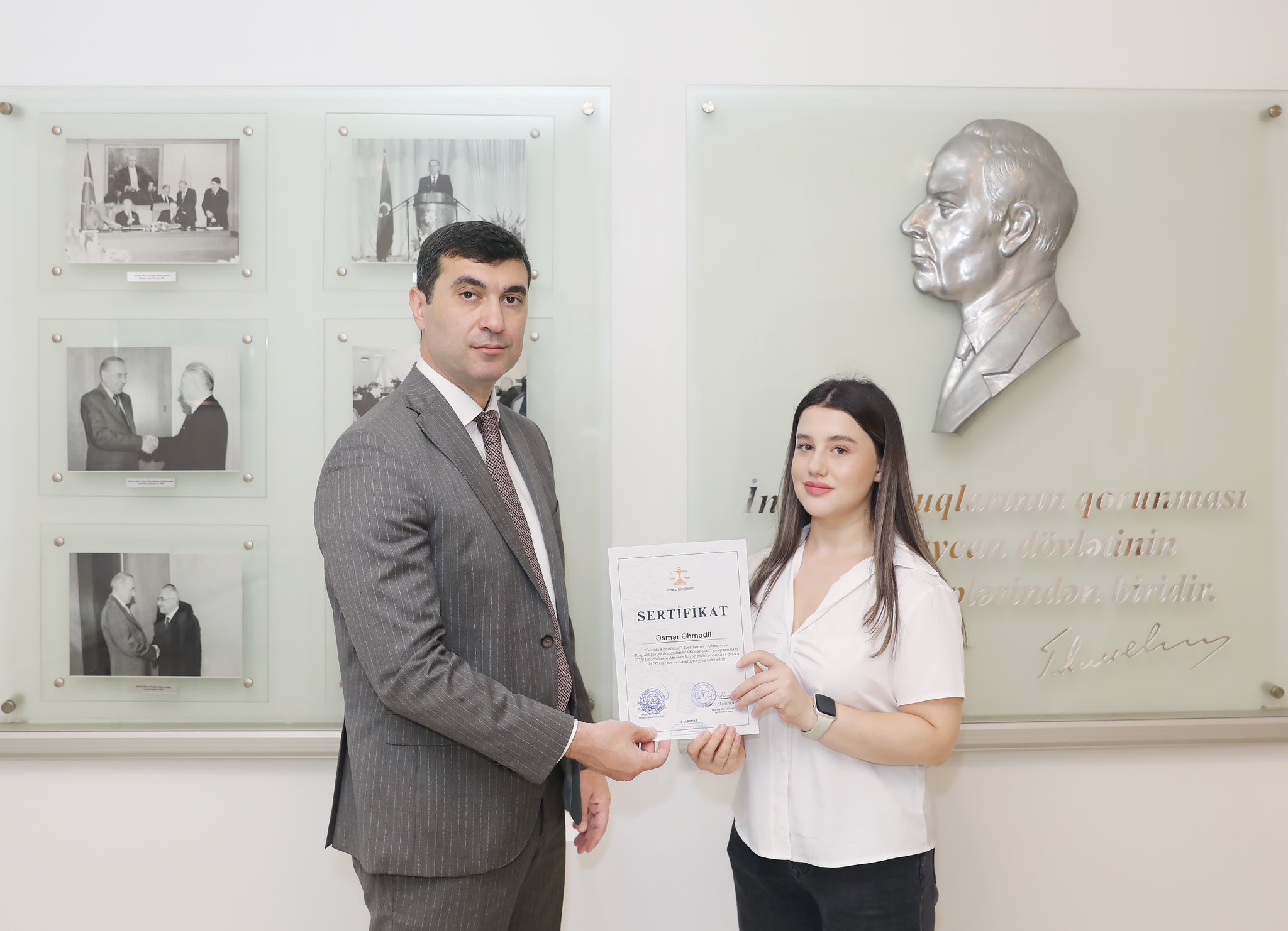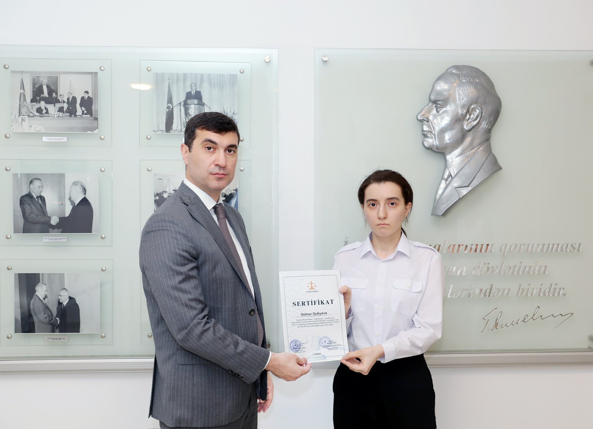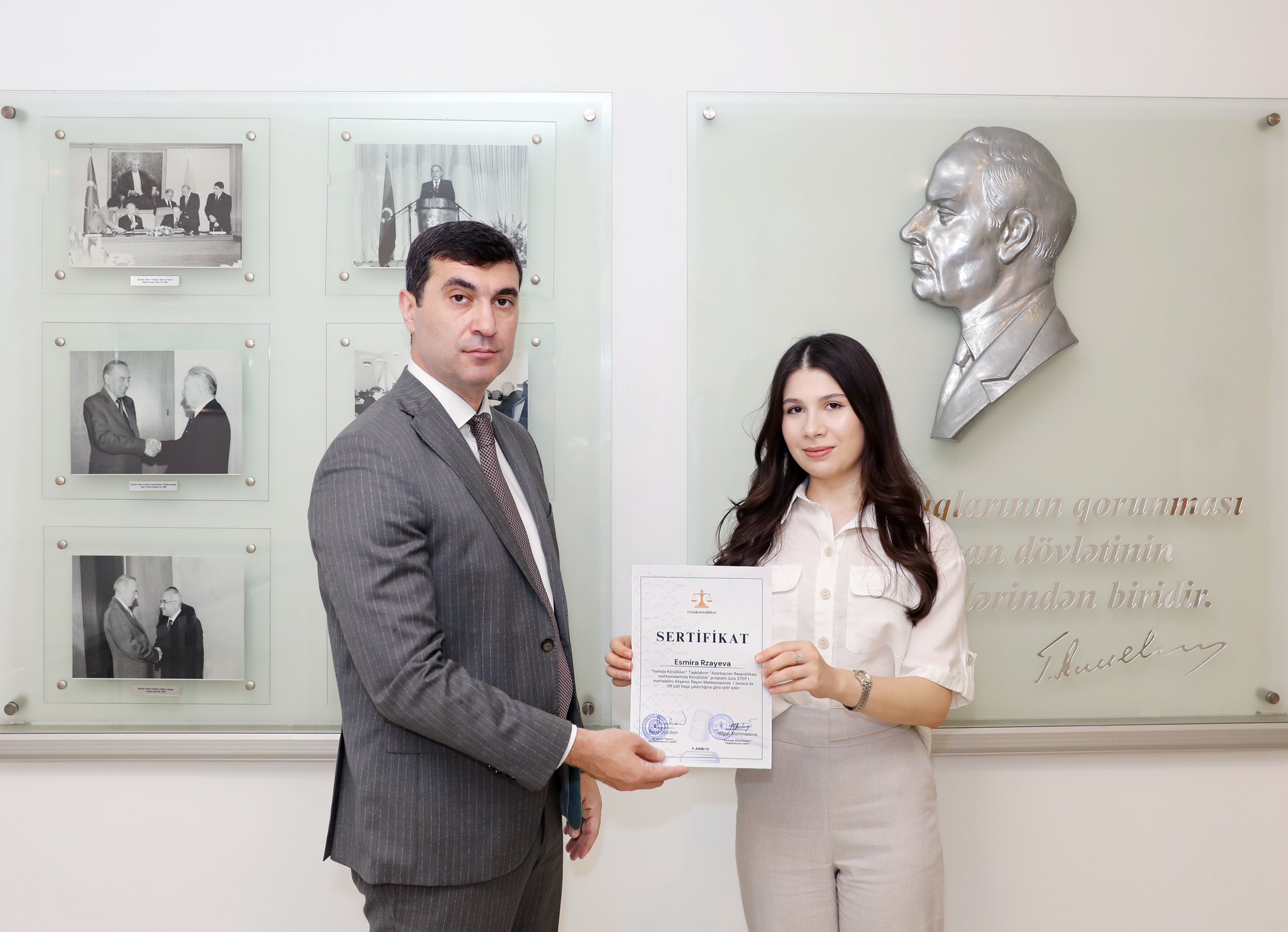 Abşeron Rayon Məhkəməsində fəaliyyətlərini uğurla başa vuran Femida Könüllülərinə sertifikatların təqdimetmə mərasimi baş tutub.Mərasimdə iştirak edən Abşeron Rayon Məhkəməsinin sədri Fərid Əyyubov könüllülərin fəaliyyətini yüksək qiymətləndirib və onlara gələcək işlərində uğurlar arzulayıb.