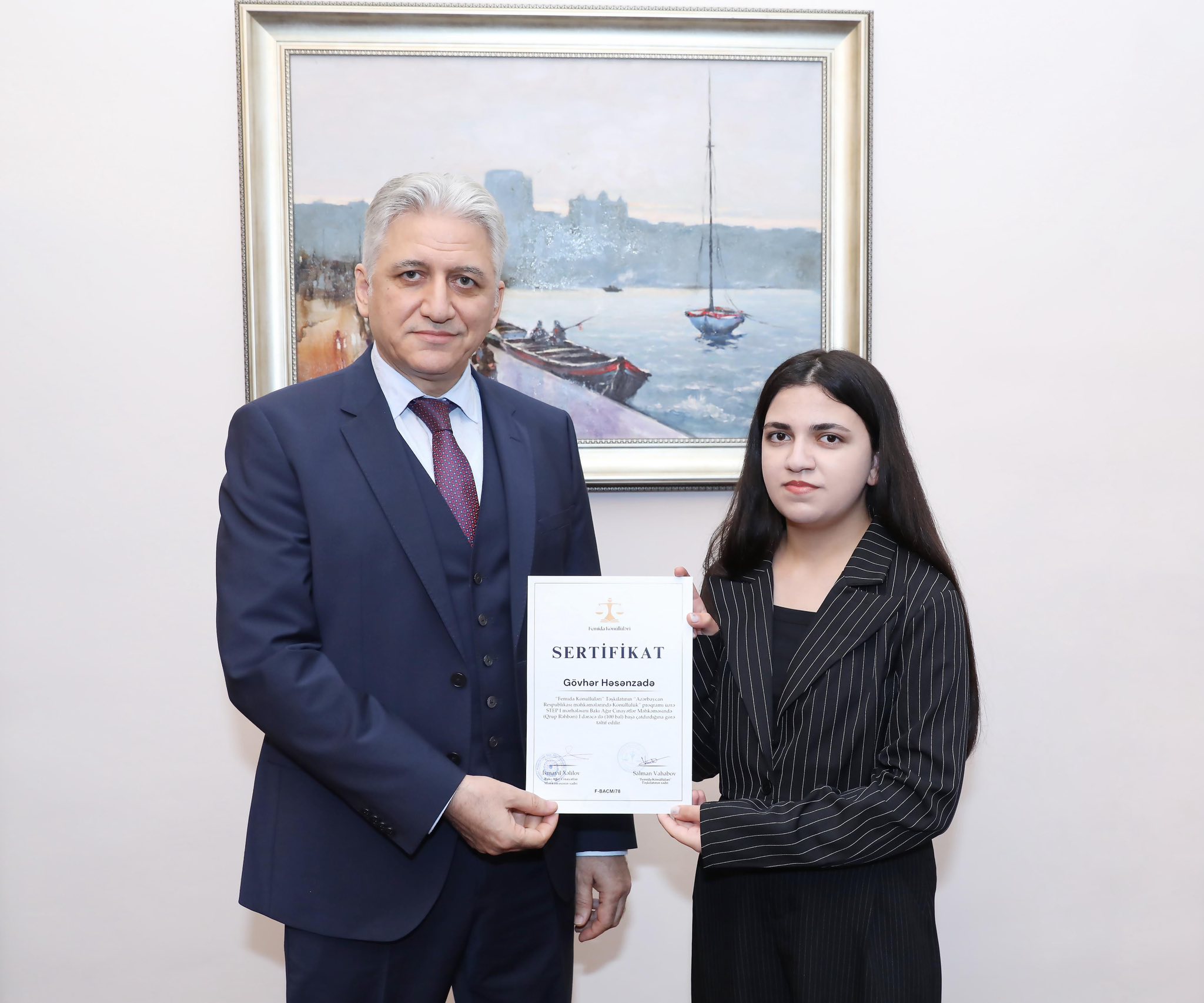 Bakı Ağır Cinayətlər Məhkəməsində fəaliyyətlərini uğurla başa vuran Femida Könüllülərinə sertifikatların təqdimetmə mərasimi baş tutub.Mərasimdə iştirak edən Bakı Ağır Cinayətlər Məhkəməsinin sədri İsmayıl Xəlilov könüllülərin fəaliyyətini yüksək qiymətləndirib və onlara gələcək işlərində uğurlar arzulayıb.