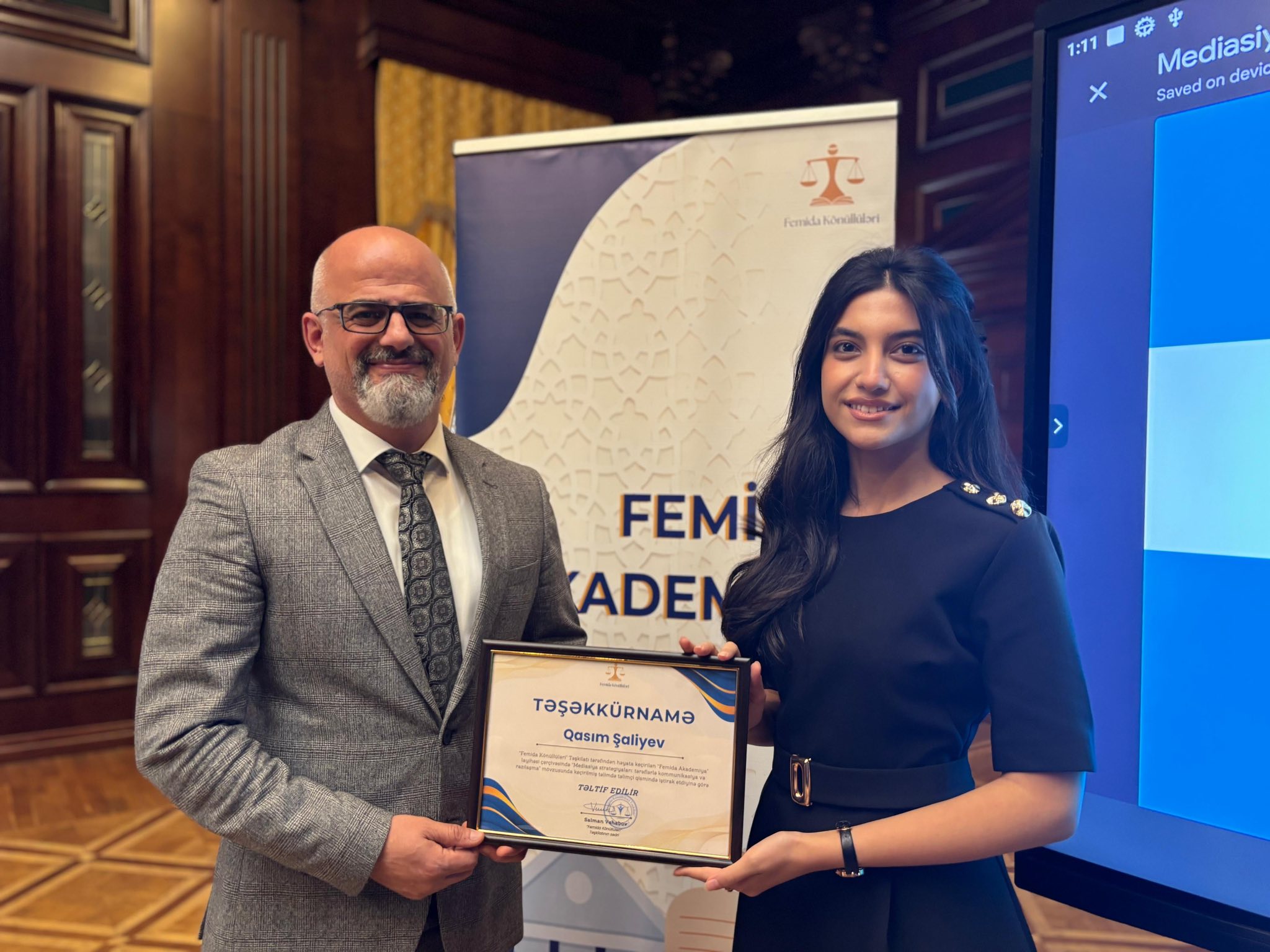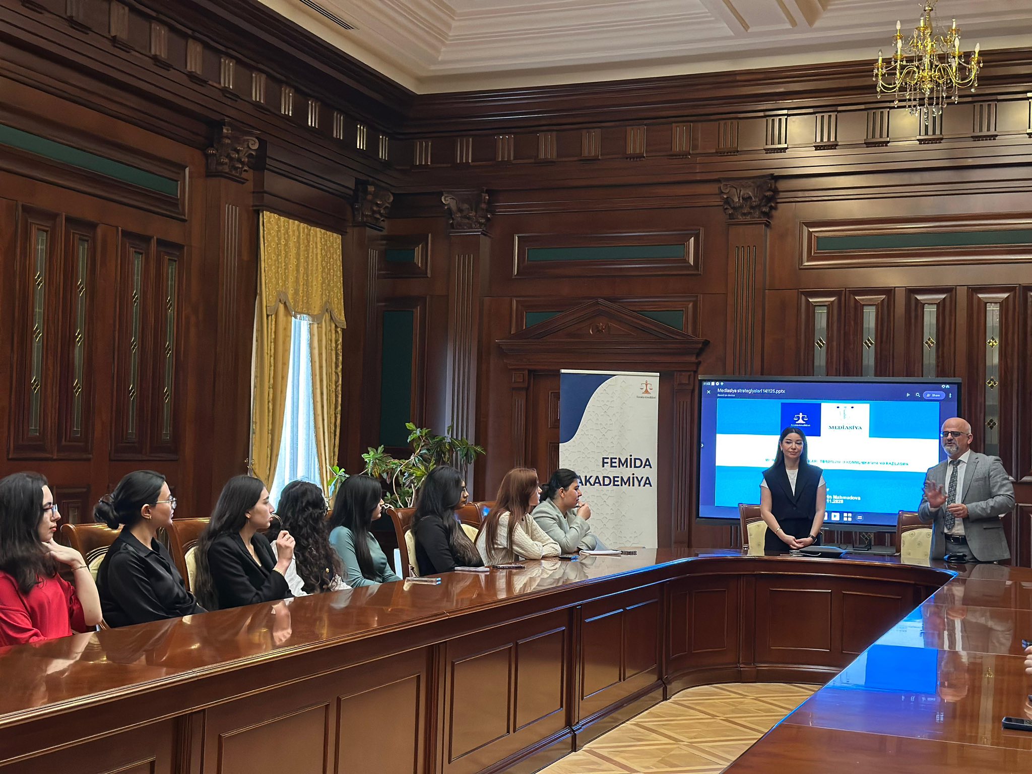 14 noyabr 2025-ci il tarixində “Konstitusiya və Suverenlik İli” çərçivəsində Femida Könüllülərinin hüquq sahəsində peşəkar inkişafını dəstəkləmək məqsədilə həyata keçirilən “Femida Akademiyası” layihəsi çərçivəsində Azərbaycan Respublikasının Vəkillər Kollegiyasının üzvü, 15 saylı Mediasiya Təşkilatının təsisçisi və direktoru, vəkil Qasım Şaliyev tərəfindən "Mediasiya strategiyaları: tərəflərlə kommunikasiya və razılaşma" mövzusuna həsr olunmuş təlim sessiyası baş tutub.Təlim zamanı mediasiya prosesində neytrallığın və qərəzsizliyin qorunmasının, tərəflər arasında effektiv dialoqun qurulmasının və münaqişələrin konstruktiv üsullarla həll edilməsinin praktiki aspektlərini iştirakçıların diqqətinə çatdırıb. O, həmçinin mediasiya qanunvericiliyinin tələblərinə uyğun olaraq mediasiya prosedurunun mərhələləri, mediatorun hüquq və vəzifələri, eləcə də tərəflərin hüquqi statusu barədə ətraflı izah verib.
